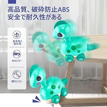 【赤ちゃんのハイハイと追いかけっこを誘う】恐竜の背中には高感度のセンサーが付いており、触ることができます。この恐竜のおもちゃは柔軟に動き、頭を振り、素敵な音楽とソフトなライトが赤ちゃんのハイハイや追いかけっこを誘います。