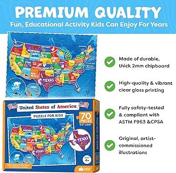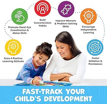 4~6歳の子供向けのパズルで認知スキルを高め、インタラクティブな地理遊びを通じて論理、記憶、手と目の協調を強化します。 このフロアパズルは、お子様が米国の各州のピースに合うように、細かい運動能力と空間認識を促進します。 批判的思考と早期STEM学習を強化するように設計されており、4歳の男の子と女の子のための教育玩具を実際に探求する方法を提供します - 画面なしでたくさんの楽しみがあります。