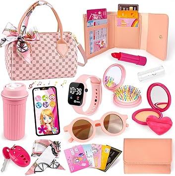 CORPERTOYS メイクおもちゃ お化粧セット 女の子 おしゃれバッグ 携帯 腕時計 ドレッサーおもちゃ メイクごっこ遊び メイクポーチ なりきり 3歳以上 プレゼント クリスマス a