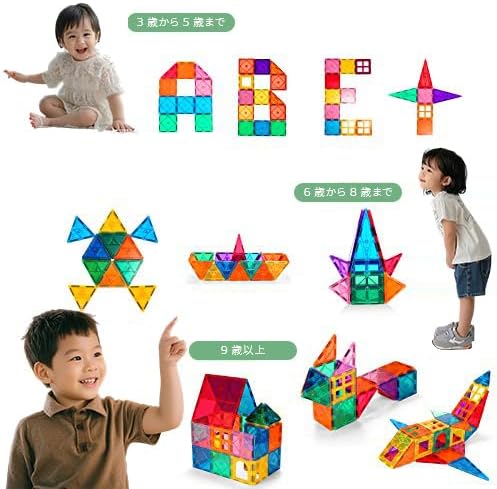 教育用磁石ブロック:子供の三次元空間感覚を育みます。子供の色や形の認識能力、創造力や想像力、実践力とデザイン能力を伸ばすのに役立ちます。幼稚園児向けのおもちゃとして最適です。家庭や幼稚園、プリスクールなどでも使いやすいで