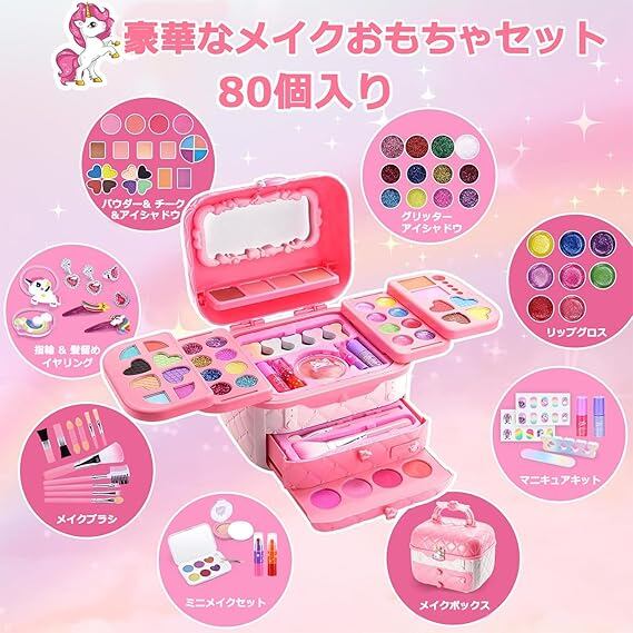 VCYCTO メイクセット おもちゃ 女の子 お化粧 子供 キッズメイクアップ コスメセット 子供用 メイクアップ 化粧品 プリンセス 玩具 小学生 メイクおもちゃ セット 本物 洗える メイク遊び 誕生日プレゼント 女の子 4 5 6 7 8 9 10 11 12 13 歳 人気 ランキング 女の子 クリスマス プレゼント ギフト b