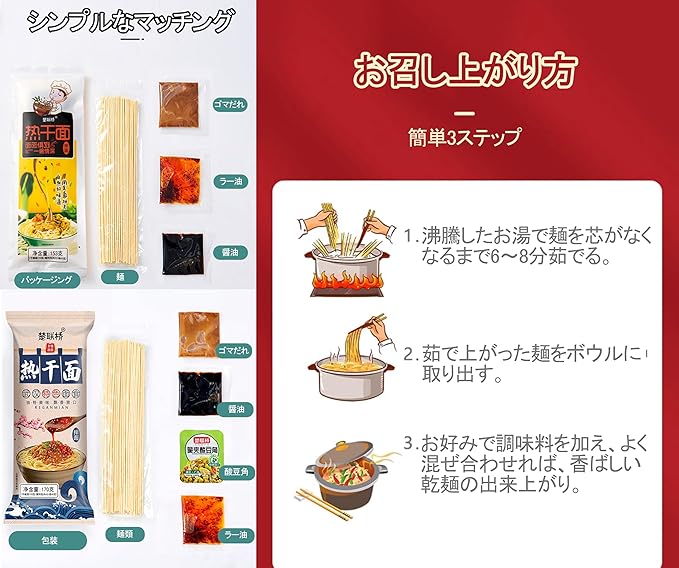 ?干面 コシが強くモチモチしている まろやかなゴマペーストの風味 力強い味わい 中華麺 熱乾麺 汁なし麺 カップ麺 インスタント麺 インスタントラーメン ごま味噌熱乾麺 混ぜ麺 素麺 かんすい麺 湖北省武漢の特産 武漢熱乾麺 即席麺 速食(150g*3袋)新旧包装をランダムに出荷 a
