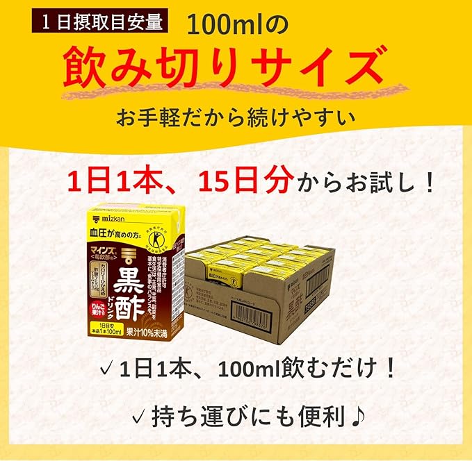 ミツカン マインズ (毎飲酢) 黒酢ドリンク 紙パック 100ml×15本 [トクホ] 飲むお酢 a