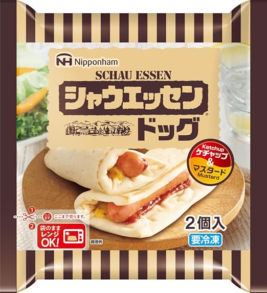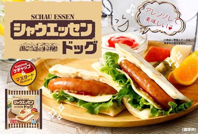 ポークソーセージ(国内製造)、小麦粉、トマトケチャップ、砂糖、植物油、還元水あめ、マスタードソース、醸造酢、マーガリン、イースト、食塩、香辛料、加糖卵黄、りんごパルプ、ナチュラルチーズ/増粘剤(加工デンプン、増粘多糖類)、調味料(アミノ酸)、リン酸塩(Na)、ビタミンC、乳化剤、酸化防止剤(ビタミンC)、着色料(ウコン、カラメル、クチナシ)、発色剤(亜硝酸Na)、酸味料、(一部に卵・乳成分