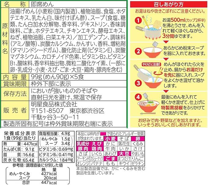 油揚げめん(小麦粉(国内製造)、植物油脂、食塩、ホタテエキス、乳たん白、味付けぽん酢)、スープ(食塩、糖類、たん白加水分解物、香辛料、デキストリン、香味調味料、ごま、ホタテエキス、チキンエキ