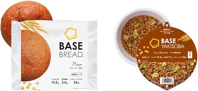 ベースフード ベース焼きそば ブレッドセット [ソース焼きそば4個・プレーン 4袋] カップ麺 置き換えダイエット ダイエット食品 完全栄養食 低糖質 BASE BREAD BASE FOOD パン a