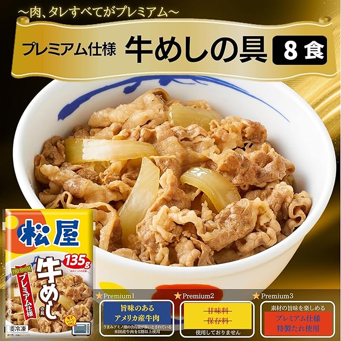 松屋人気No1の『牛めしの具』は肉とご飯の相性抜群!秘伝の特製プレミアムタレを使用(8個入り)