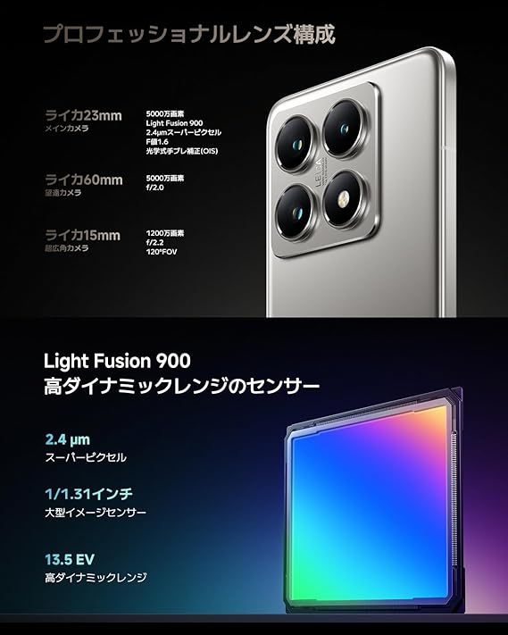 【ライカと共同開発のトリプルカメラシステム。いつでも心躍る撮影体験を】ライカ共同開発トリプルカメラシステムを搭載。マクロから望遠まで、様々な画角で誰でも簡単に印象的な作品を撮影できます。また、従来モデルよりアップグレードしたライカSummilux光学レンズは、大口径の絞りと優れた光学性能を備えています。低光量の環境でもディテールを捉えるだけでなく、優れた色味、コントラスト、解像度で美しい雰囲気を再現します。