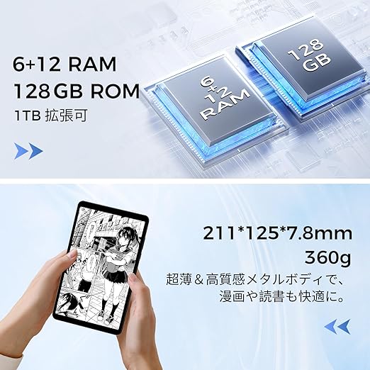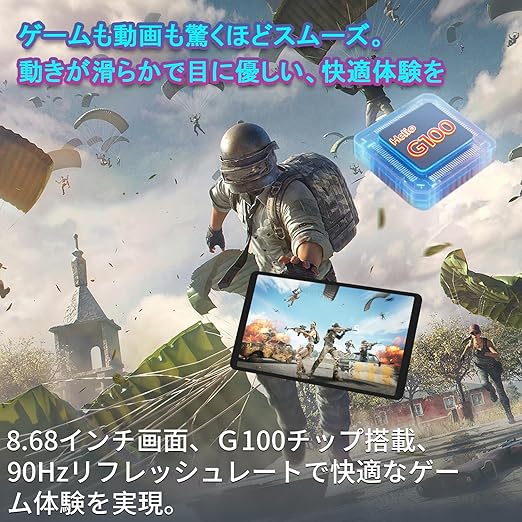 【最新Helio G100搭載】RebotAi A9タブレットは、MediaTekの最新Helio G100 (MT8781)プロセッサーを採用。2つのCortex-A76高性能コアと6つのCortex-A55高効率コアからなる8コアCPUを搭載し、さらに従来のG99をベースに多方面で性能が強化されています。日