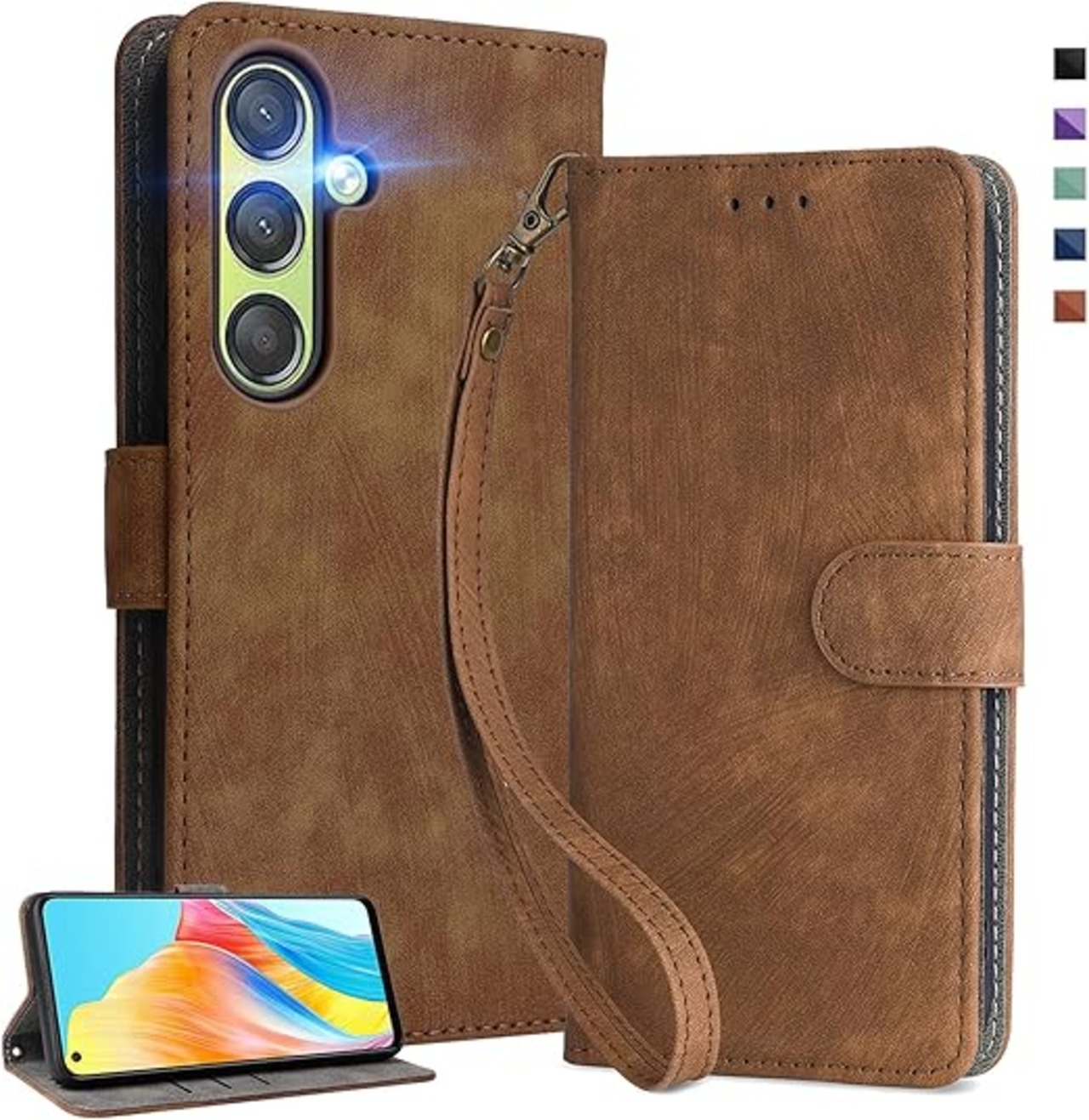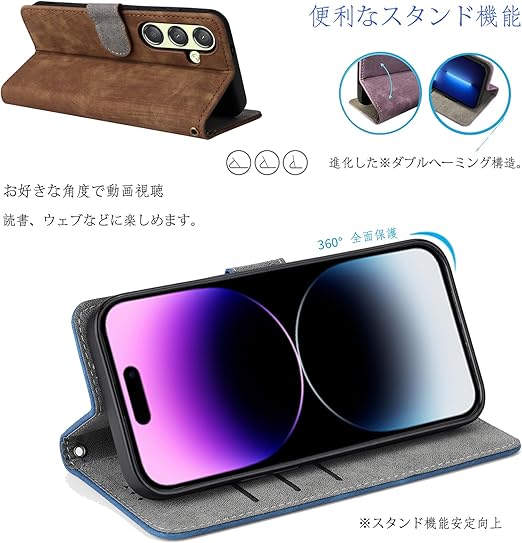 UnivoColors Galaxy S24 FE (SM-S721Q/SCG30) 手帳型 スマホケース 携帯カバー 高級合皮 RFIDブロッキング カード収納 専属ストラップ同梱 マグネット開閉 全面保護 カメラ保護(ブラウン) a