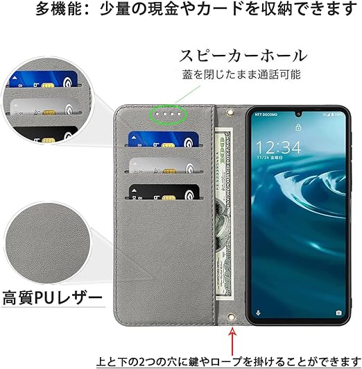 AQUOS Wish 5 ケース 手帳型 高質レザー AQUOS Wish 5 ケース 手帳型 ケース 携帯カバー 皮革 Wish 5 ケース 耐衝撃 内蔵マグネット開閉式 ウィッシュ5 ドコモ カバー 手帳型 ベルトなし スマホケース おしゃれ カードポケット スタンド機能 便利 スプラット同梱 携帯ケース ブラック b