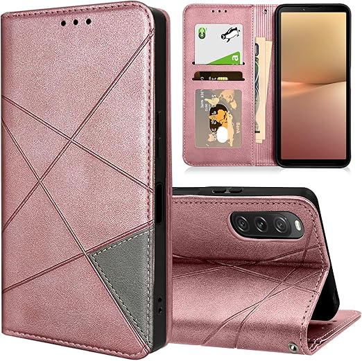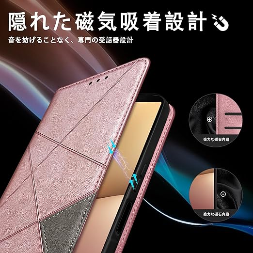 Sony Xperia 10 V ケース 手帳型 SO-52D SOG11 カード収納 財布型 カバー エクスペリア10V 耐衝撃 キックスタンド機能 スマホケース PU合皮 TPU素材 携帯カバー 薄型 軽量 ストラップホール付 ローズゴールド a