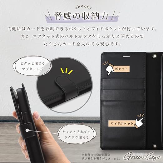 シズカウィル AQUOS sense9 SH-53E SHG14 SH-M29 手帳型 ケース アクオスセンス9 カバー グレイスケース ストラップ付き ストラップホール 1個入り リッチブラック a