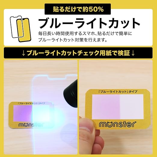 ベルモンド AQUOS wish5 用 | 強化 ガラスフィルム ブルーライトカット 保護 フィルム 硬度10H | SH-52F A502SH SH-M32 アクオス ウィッシュ5 モンスターフィルム ガイド枠付き 2枚 セット B1746 a