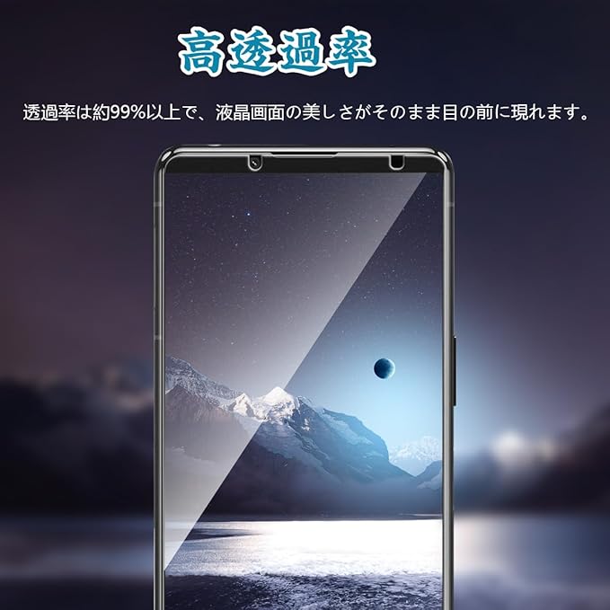 【高い光透過率】画質を徹底的に追求するため、光透過率99%の高級ガラスを使用しています。 透明なガラスフィルムの上に光フィルターフィルムを何層にも重ねているため、優れた透明性と一体感が生まれ、まるで何も貼っていないかのような美しさをそのまま鑑賞できます。