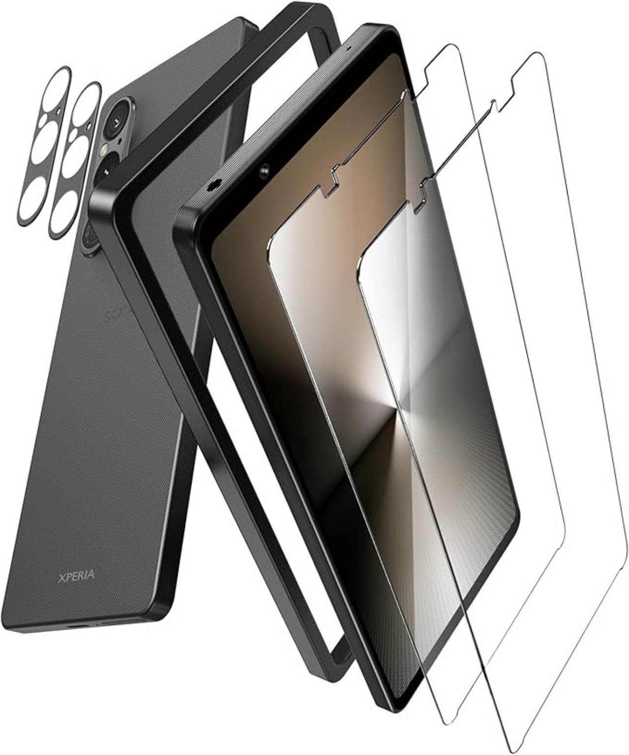 【貼り付け簡単&ガイド枠付き】 2ステップだけで、初心者として完璧に貼り付け!画面に置くだけでキレイに貼れ、気泡も抜けやすい。CNC彫刻加工を採用されたガイド枠はXperia