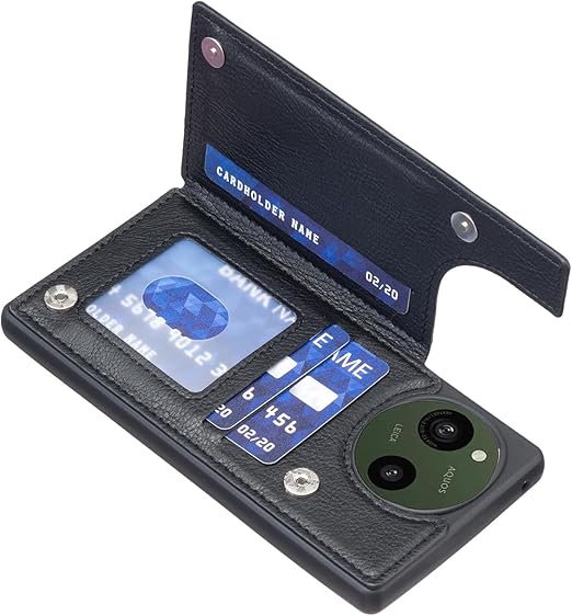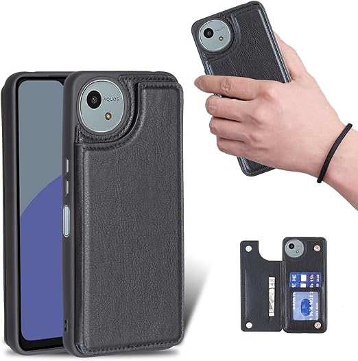 for AQUOS sense9 SH-53E SHG14 SH-M29 ケース スタンド機能 ケース ICカード収納 カード 背面カード収納 左と右の電話ケースを反転、シンプルなレトロなファッション、防水と防汚電話ホルダー、多機能財布収納付き、PUレザー、TPUソフトインナー(黒) a