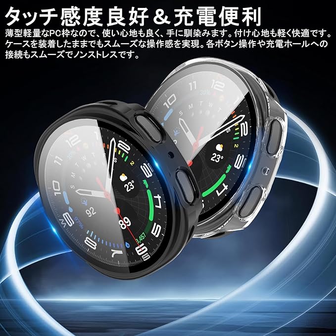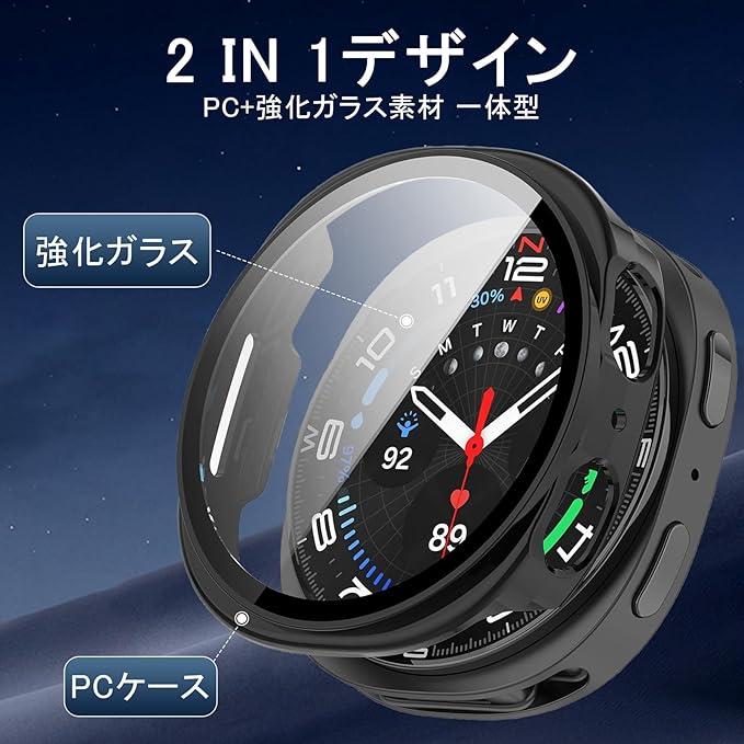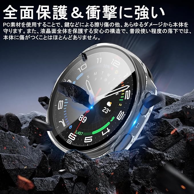 【全面保護】この製品はPC+ 強化ガラス素材を採用して、日常生活での衝撃から Watch を保護します。硬度 9H の強化ガラスで、超クリアな画面を提供して、なお画面の損傷を防止および回避し、 Watchをしかっり保護します。