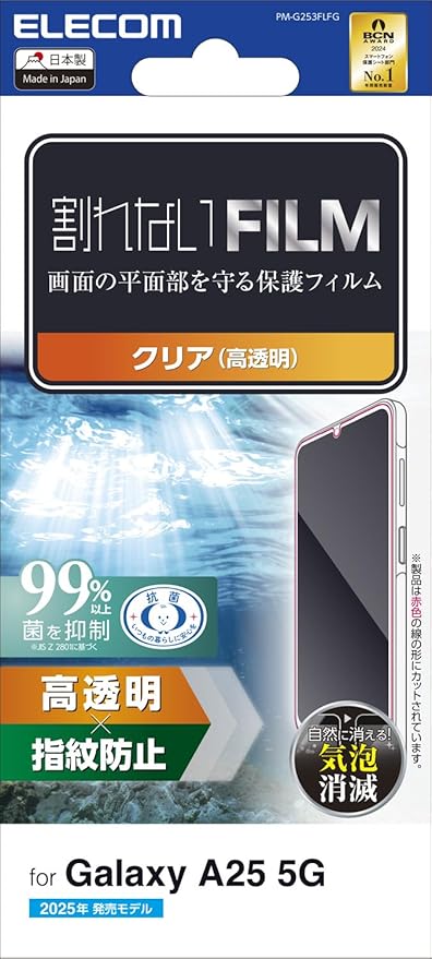 エレコム Galaxy A25 5G (SC-53F) フィルム グレア 保護 指紋防止 自己吸着で貼りやすい エアーレス PM-G253FLFG a