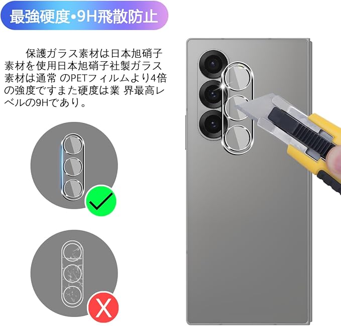 【2枚セット】 対応 Galaxy Z Fold6 SC-55E カメラフィルム 【日本旭硝子 硬度9H】 Galaxy Z Fold 6 用 レンズフィルム カメラ保護フィルム 対応 ギャラクシー Z Fold6 カメラ レンズ保護 3D Touch対応 、高透過率 、気泡ゼロ 、防爆裂 、飛散防止 、衝撃吸収 、指紋防止 、ラウンドエッジ加工 、簡単貼り付け a