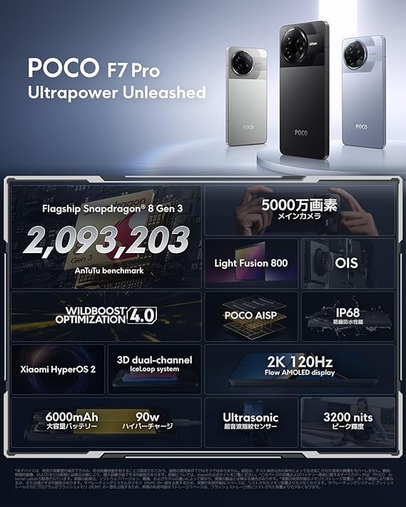 Xiaomi POCO F7 Pro 12GB+256GB 日本語版 Simフリー スマートフォン Qualcomm Snapdragon 8 Gen 3搭載 6000mAhバッテリー 90W急速充電 docomo/au/SoftBank/Rakuten Mobile 回線対応 シルバー a