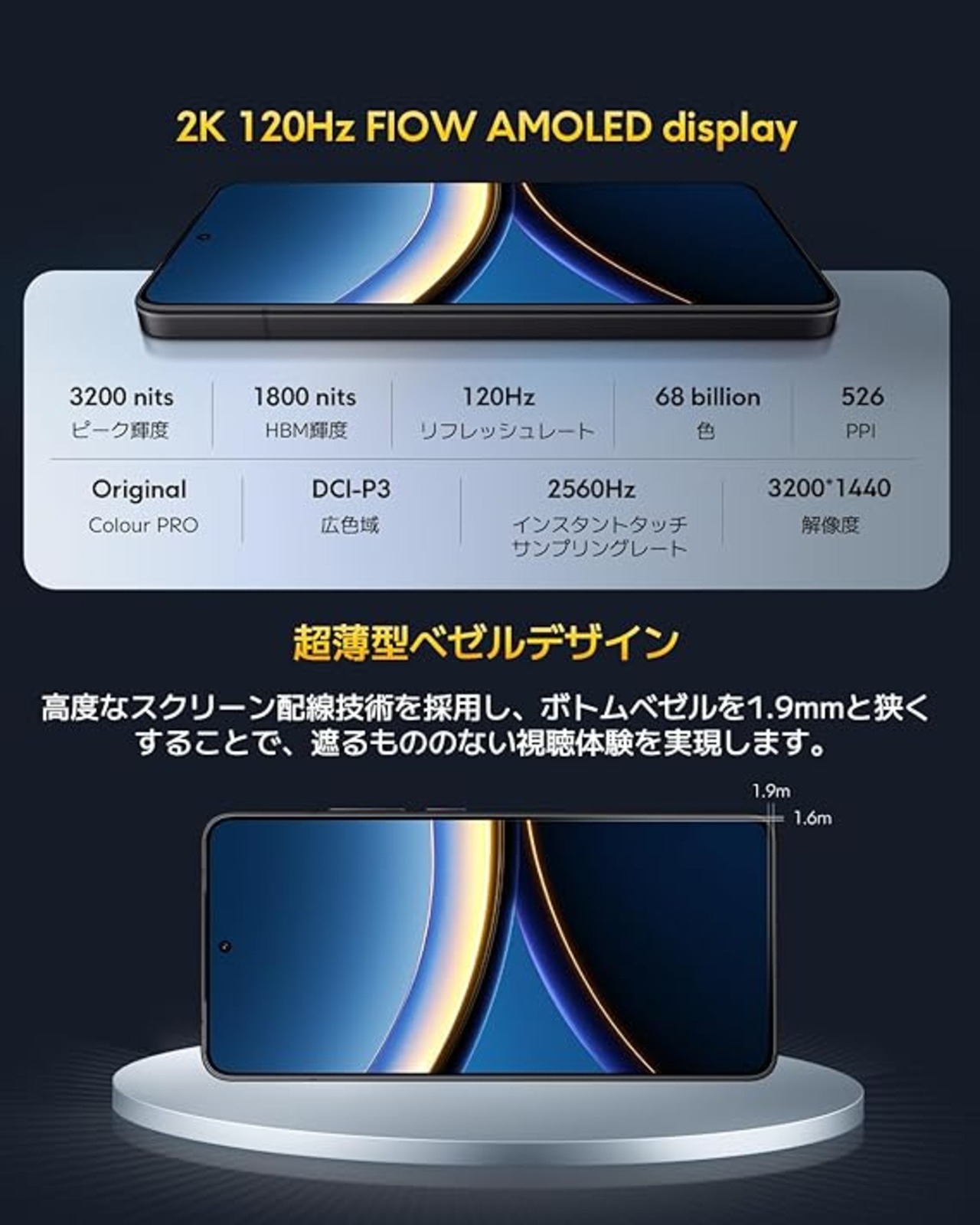 超大容量6000mAhバッテリーと90W急速充電:6000mAhの大容量バッテリーを備え、90Wのハイパーチャージ急速充電(充電器同梱)に対応しているため、バッテリー切れを気にすることなく安心して