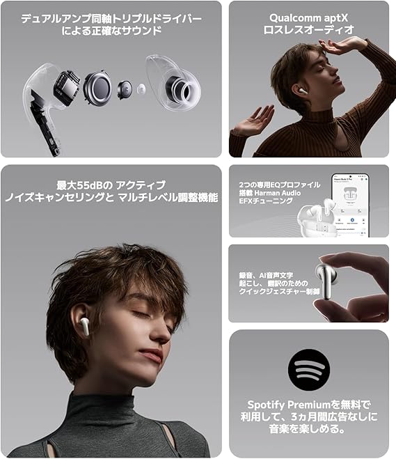 デュアルアンプ同軸トリプルドライバーによる最高峰のオーディオ:Xiaomi初のデュアルアンプ機能を搭載。精密に設計された11mmのデュアルマグネットダイナミックドライバーは、高度なソフトウェアチューニングを組み合わせて、パワフルな低音とワイドな音域を提供。前モデルの約2倍となる8.5dBの低音改善を実現しました。また、PZTツイーターにより明るくクリアな高音を表現するだけでなく、プラナーにより広いサウンドステージを提供し、臨場感あるサウンドを再現します。