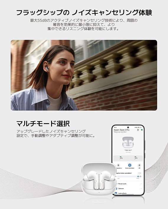 シャオミ(Xiaomi) ワイヤレスイヤホン Xiaomi Buds 5 Pro Wi-Fi版 4.2Mbpsロスレスオーディオ 55dBアクティブノイズキャンセリング 40時間再生 専用アプリ対応 録音機能搭載 ブラック a