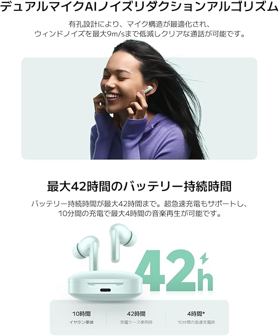 【デュアルドライバー、微細な音まで表現】アップグレードした12.4mmの大型ドライバーと5.5mmのツイーターを搭載したデュアルドライバーシステムを採用。それぞれの音域を分担することで、低音の迫力と高音の伸びやかさを両立させ、よりバランスの取れたサウンドを実現。さらに、映画やTVの視聴に最適な3Dオーディオを搭載し、まるでその場にいるかのようなリアルなオーディオ体験を提供します。