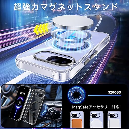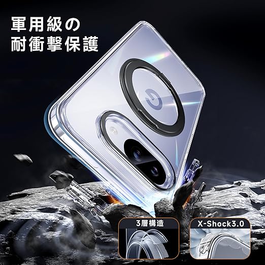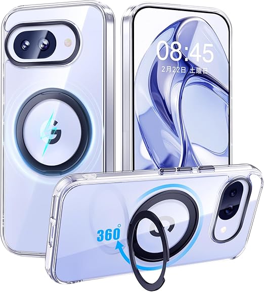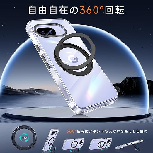 【米軍MIL規格・Magsafe対応】Google Pixel 9a 用 ケース MagSafe対応 リング 360°回転スタンド機能 縦横両対応 透明 黄ばみ防止 ワイヤレス充電 レンズ保護 耐衝撃 携帯カバー グーグルピクセル9a カバー 6.3 インチ マグネット搭載 車載ホルダー マグセーフ対応 おしゃれ (クリアブラック) a