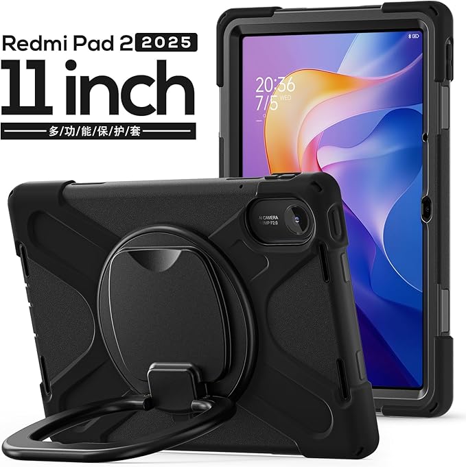 360度回転 For Xiaomi Redmi Pad 2 ケース Wi-Fiモデル/4Gモデル 縦置き 横置き 頑丈 耐衝撃 肩掛け シャオミ redmi pad2 11インチ Android タブレット保護ケース 持ち手付き キッズ ショルダーベルト付き アウトドア,黒 a