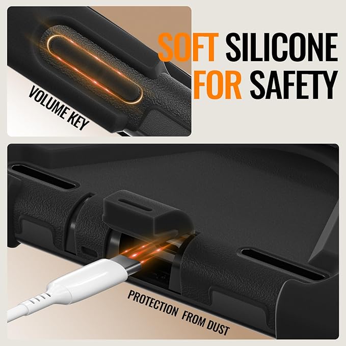 耐衝撃三重構造:非常に高い耐久性PCと柔軟で耐衝撃性高いシリコン素材を使用したソフトケース。端末にしっかりフィットしてタブレット を保護します。ホコリなどが入りにくいダストキャップ付き。