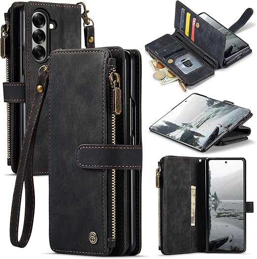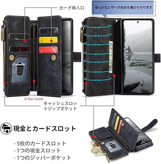 SeGinn Galaxy Z Fold7 対応 ケース 手帳型 カバー PUレザー 多財布デザイン スタンド機能付き 磁気バックル付き カード収納 コイン収納 ギャラクシーZフォールド7 ケース 手帳型 大容量財布型 収納ポケット 衝撃防止 擦り傷防止 スクリーン/カメラ保護 実用性高 galaxy z fold7 財布型ケース (ブラック) a