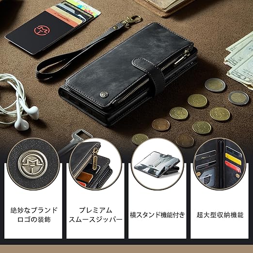 【高品質素材】外部のカバーは高品質なPUレザー素材で作られ、素材の表面に手触りは非常に良い、上品で洗練されたデザインです。中身は柔軟なTPU素材で作られて、スマートフォンの全面保護でき、脱着簡単です。汚れと傷に強い合成皮革の特性を最大限引き出