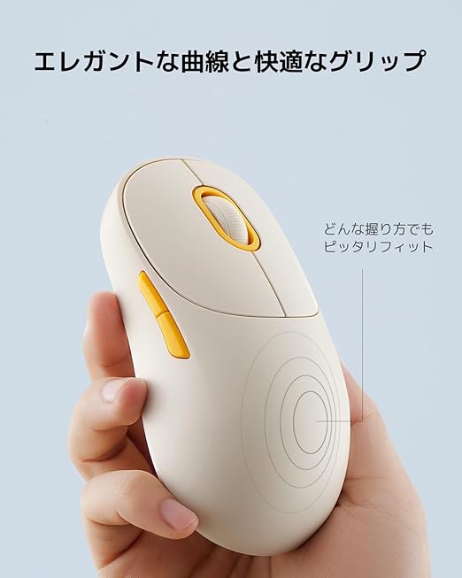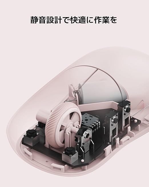 【選べるカラー、便利なサイドボタン】オフホワイト、ダークグレー、ピンク、ブルーの4色展開。デスクトップを引き立てるカラーを選べます。前後の動きを親指で操作するデュアルサイドボタンを使って、効率良く作業できます。 14:59