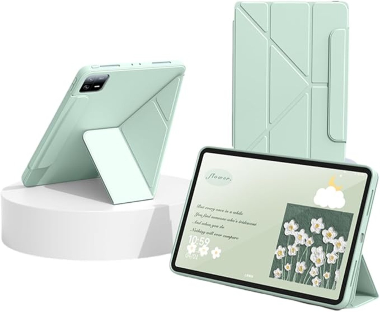おしゃれ Xiaomi Pad 6 ケース カバー 三つ折り スタンド Xiaomi pad 6 Pro ケース シャオミ パッド シックス/シックス プロタブレットケース 手帳型 縦型 横型 ソフトカバー PU レザー 衝撃吸収 多角度 変更 スリム ,薄緑 a