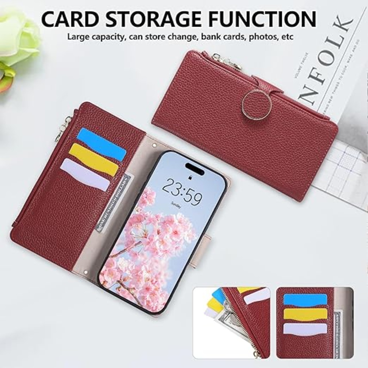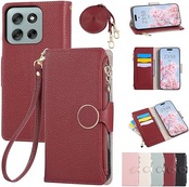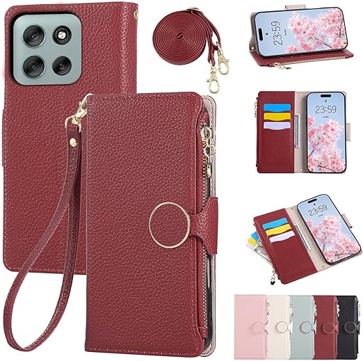 Rosbtib Motorola Moto G66j 5G ケース 手帳型 moto G66y 5G ケース ショルダー 財布型カバー モトローラG66j 5G ケースカバー おしゃれ ファスナー型 小銭入れ カード収納 モトローラg66y 手帳型ケース 手首/肩掛けストラップ付 マグネット式 スタンド機能 motog66j スマホケース 可愛い 女性 人気 肌触り良い 全面保護(レッド) a