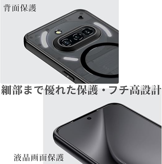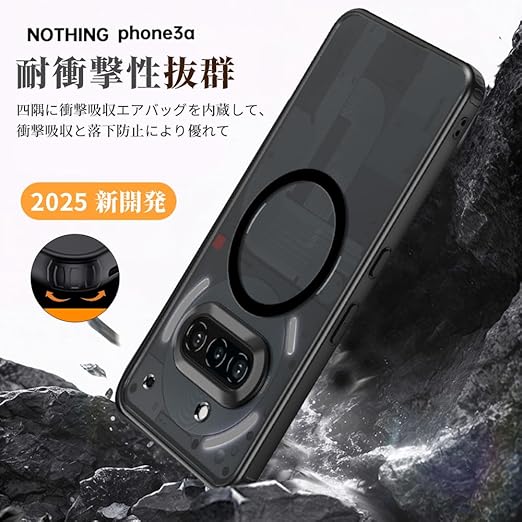 iYiTai Nothing Phone 3a 用 ケース 高?力マグネット搭載 2重構造 [TPU+PC] 半透明 マット感 ストラップホール付き 薄型 軽量 落下防止 傷防止(マット・ブラック) a
