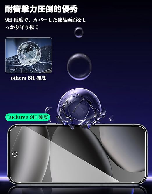 【高硬度9H ・飛散防止】日本旭硝子材料を使用し、沖撃に強く、落下、摩擦、沖撃でも簡単には割れません。沖撃を最小限に抑え、画面の破損を抑え、画面をスクラッチから保護します。