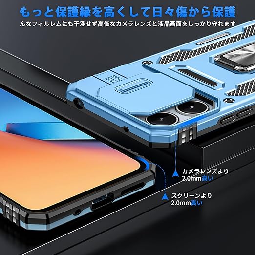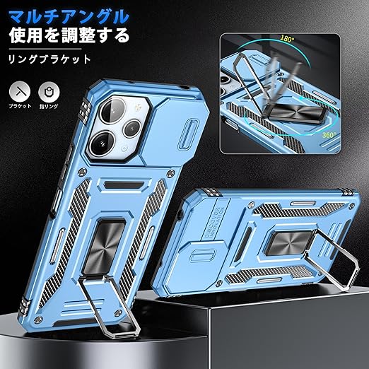 Xiaomi Redmi 12 5G/4G/ ケース Redmi Note 12R ケース リング付き スライド式カメラプロテクター付き 衝撃吸収 保護ケース PC スタンド機能 車載ホルダー対応 米軍MIL規格 金属リング 擦り傷防止 滑り止め Redmi 12 5G/4G/Note 12R カバー 耐衝撃 横置き機能 人気 ライトブルー C92-hm12 5g-06 a