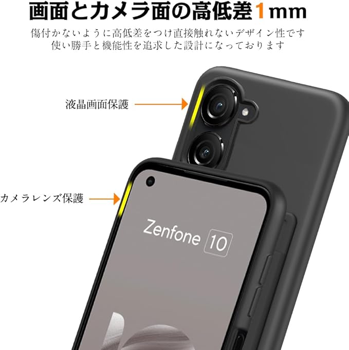 【カメラレンズ保護】 ASUS Zenfone 10/Zenfone 9 本体の薄さを維持しつつ、ケースカメラ部分にはカメラレンズより1mm高く、カメラレンズの周りを保護し、レンズの傷つきを防止できます。