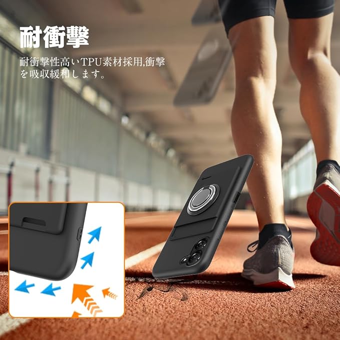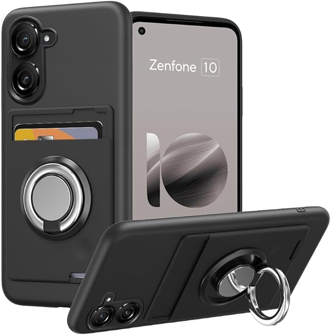 ASUS Zenfone 10 ケース リング付き カード収納 ASUS Zenfone 9 スマホケース リング スタンド機能 360°回転リング 滑り止め 黑 a
