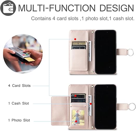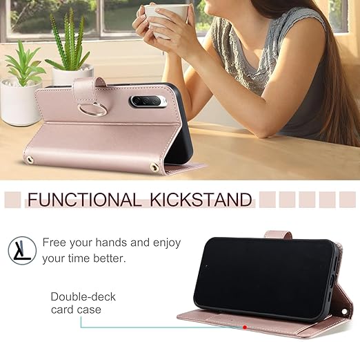 Vokpok Motorola Moto G64 5G ケース 手帳型 モトローラ g64 5G財布型 ケース 高級PUレザー おしゃれ Moto G64y 5Gケース 手帳型 強力マルチカード収納 手首ベルト、斜め肩ベルト両用 モトローラ g64 5Gケース スタンド機能付き 全面保護Moto G64 5Gケース おしゃれ小香風ギフト Moto G64/G64y 5G ケース,ローズゴールド a