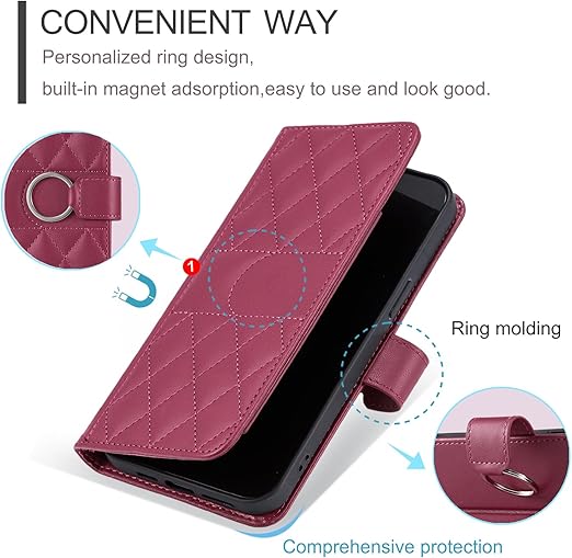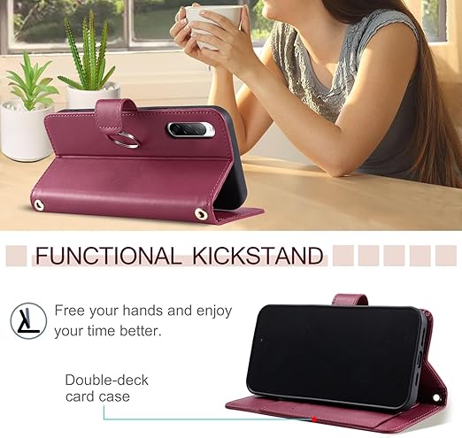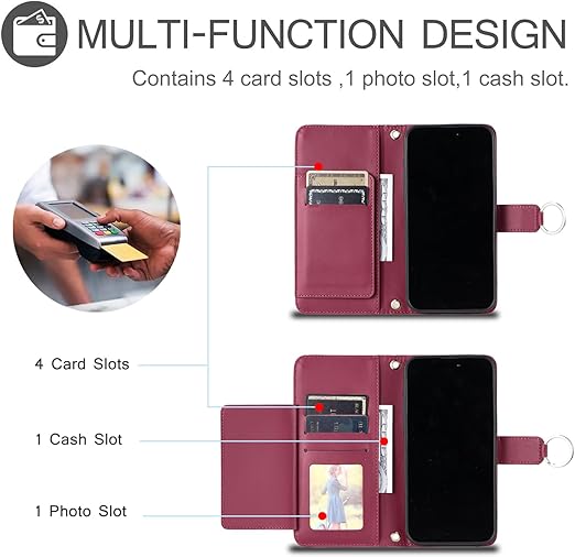 Vokpok Motorola Moto G64 5G ケース 手帳型 モトローラ g64 5G財布型 ケース 高級PUレザー おしゃれ Moto G64y 5Gケース 手帳型 強力マルチカード収納 手首ベルト、斜め肩ベルト両用 モトローラ g64 5Gケース スタンド機能付き 耐衝撃全面保護Moto G64 5Gケース おしゃれ小香風ギフト Moto G64/G64y 5G ケース,レッド a