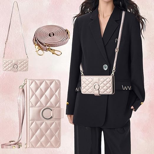 Vokpok OPPO A3 5G ケース 手帳型 オツポ A3 5G 財布型 ケース 高級PUレザー おしゃれ OPPO A3 5G ケース 手帳型 強力マルチカード収納 手首ベルト、斜め肩ベルト両用 オツポ A3 5G ケース スタンド機能付き 耐衝撃 全面保護 OPPO A3 5G ケース おしゃれ小香風 人気上品な シンプル気質 ギフト オツポ A3 対応 6.7インチ,ローズゴールド a