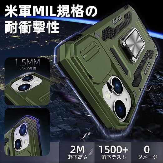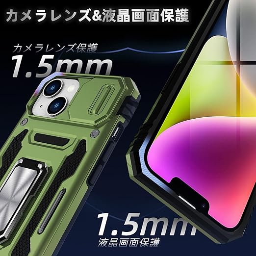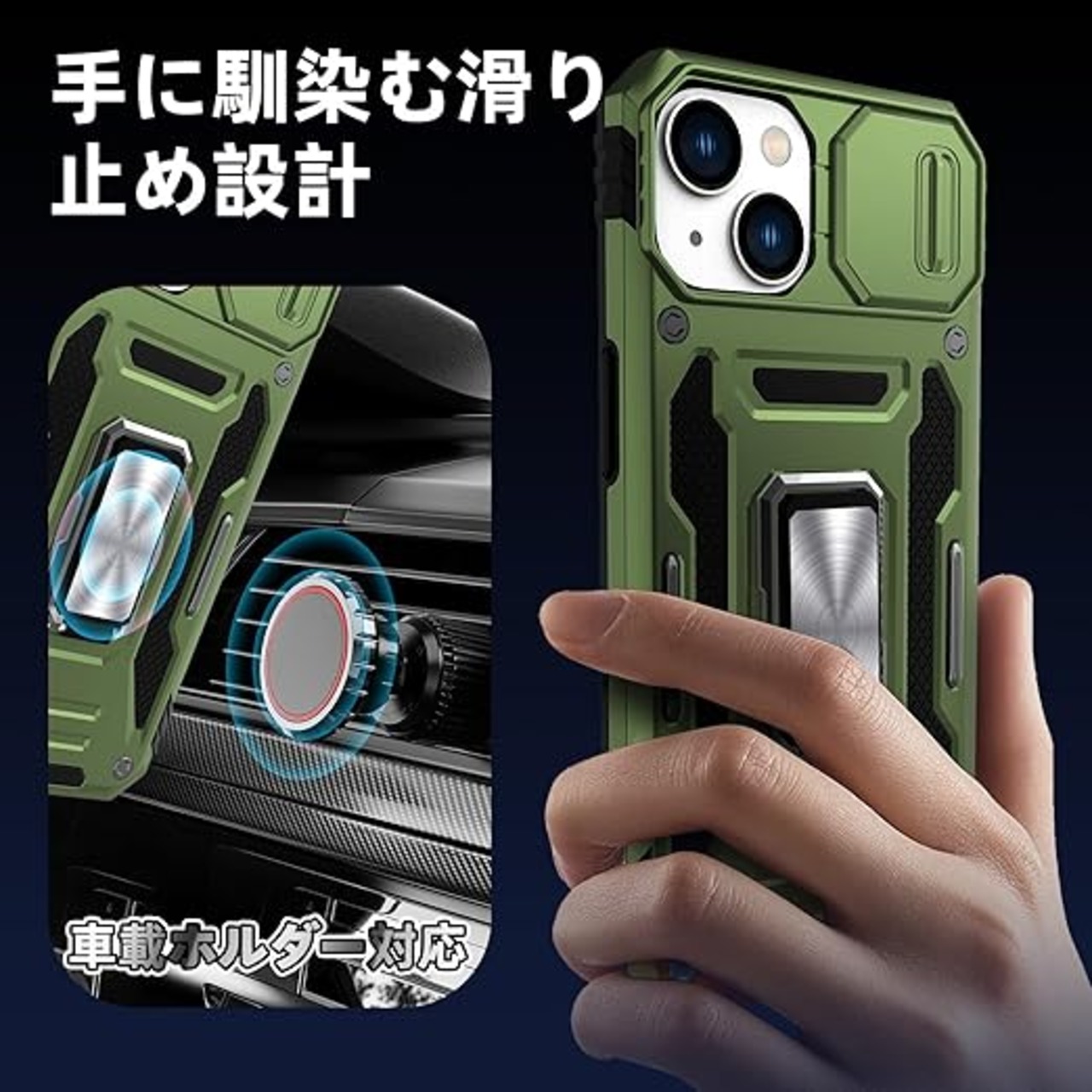 Redmi 12 5G 用 ケース リング 耐衝撃 車載ホルダー対応 カメラ保護 傷防止 米軍MIL規格 携帯カバー 滑り止め 指紋防止 頑丈 タンド タフ・アーマー おしゃれ TPU+PC材質 ダークグリーン 111-HM12R-08 a