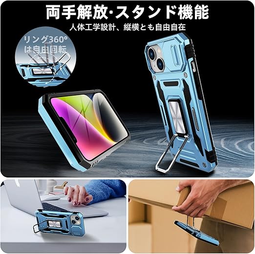 Redmi Note 13 Pro 5G / Xiaomi Poco X6 5G 用 ケース リング 耐衝撃 車載ホルダー対応 カメラ保護 傷防止 米軍MIL規格 携帯カバー 滑り止め 指紋防止 頑丈 タンド タフ・アーマー おしゃれ TPU+PC材質 スカイブルー 111-HMN13PRO-04 a