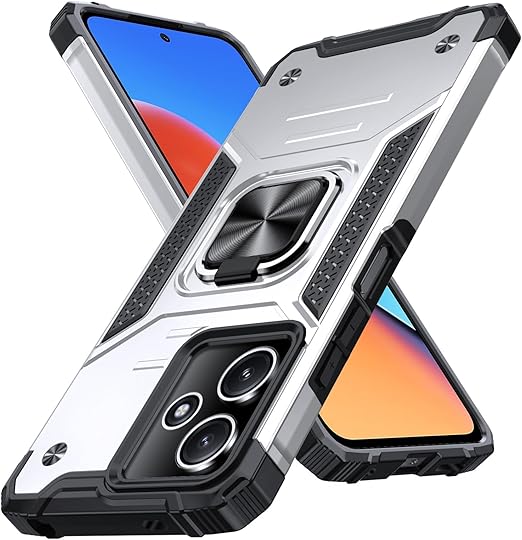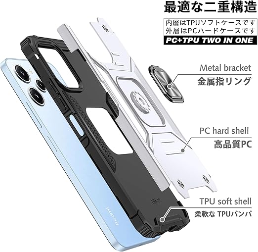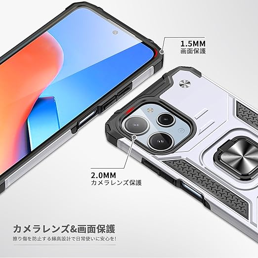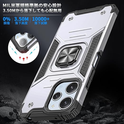 Xiaomi Redmi 12 5G/4G 用 ケース Redmi Note 12R 用 ケース リング付き 耐衝撃 米軍MIL規格取得 Redmi 12 5G/4G/Note 12R 用 カバー レンズ保護 リングつき TPU+PC 指紋防止 車載ホルダー対応 スタンド機能 防塵 薄型 軽量 落下防止 擦り傷防止 銀 C82-hm12 5g-03 a