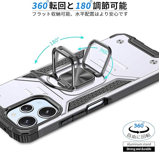 【リング付き・スタンド機能】後ろで嵌め込み式リング付き、伝統的なリングと比較して、アイフォーンの水平安定性を維持することができます。ケースを横向きにするとスタン