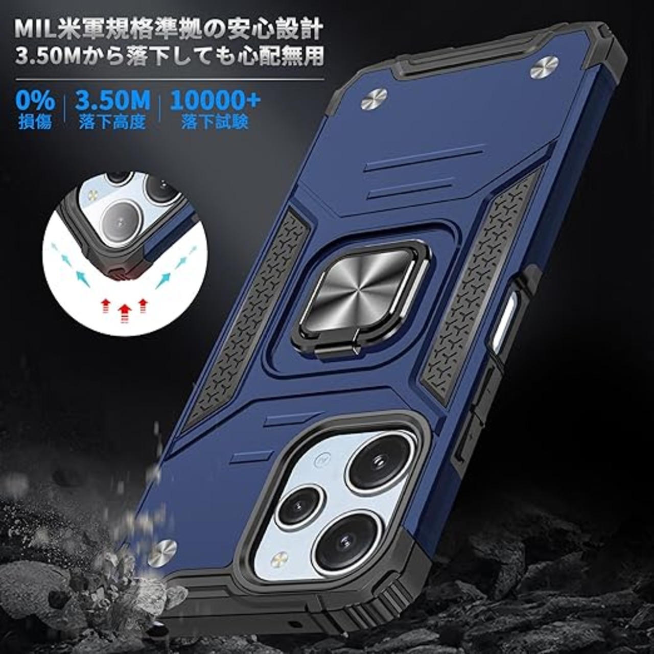 【リング付き・スタンド機能】後ろで嵌め込み式リング付き、伝統的なリングと比較して、アイフォーンの水平安定性を維持することができます。ケースを横向きにするとスタン